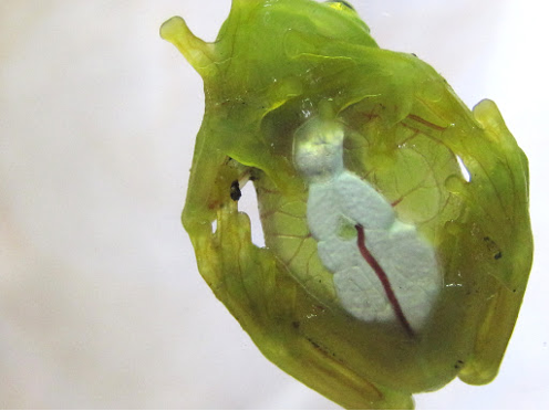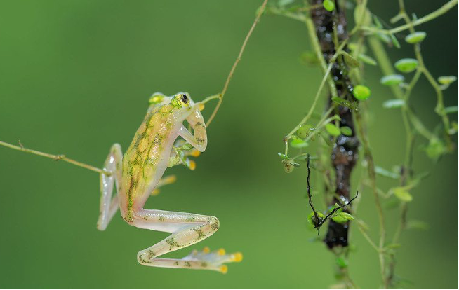 Transparency is rare and really hard to achieve because our tissues are full of molecules that absorb and scatter light – such as the pigment melatonin that protect us from UV radiation by making tissues darker; haemoglobin absorbing blue and green light to reflect the red blood colour; along with structural elements of dense tissues. Imagine a creature so transparent that you can watch its heart beat beneath its skin. Meet the glass frog – a tiny amphibian whose translucent belly and chest reveals its hidden world of infrastructures.