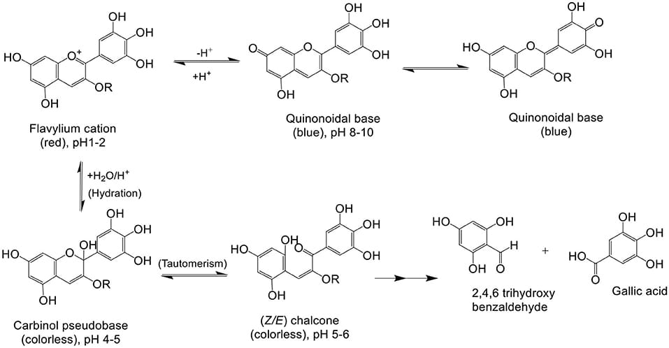Furthermore, delphinidin also becomes less chemically stable in the requisite higher pH, and without any other natural methods to stabilise it, pH becomes an immensely limiting factor. This results in a fine biological balance, where the environment must be sufficiently alkaline to present as much delphinidin blue as possible, without it altering it or breaking it down.